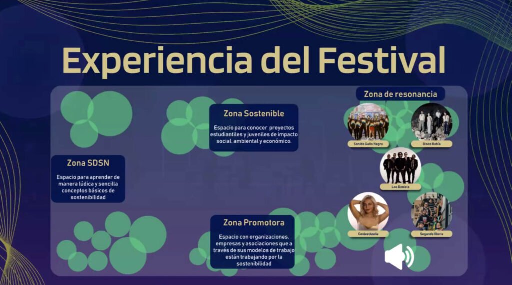 SDSN México, en colaboración con la ONU, el Tec de Monterrey y la UNAM, buscaba conectar con audiencias jóvenes a través de SDSN Youth, creando un espacio cultural que uniera música, educación y sostenibilidad. El reto: diseñar un festival atractivo, funcional y con conciencia ambiental.
