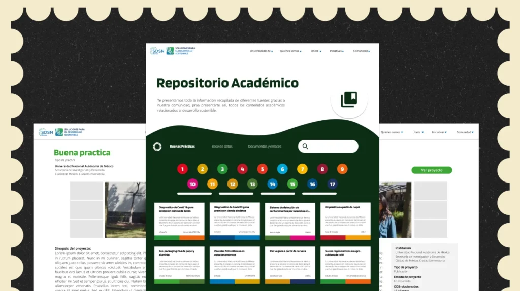 En colaboración con SDSN México, desarrollé la propuesta y estructura de una plataforma digital colaborativa diseñada para visibilizar proyectos universitarios vinculados a los Objetivos de Desarrollo Sostenible (ODS), conectando a más de 94 universidades y centros de investigación a lo largo del país.